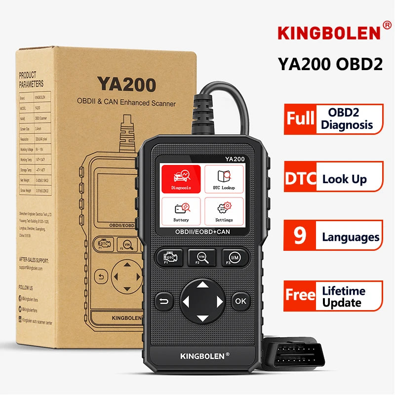 KINGBOLEN OBD2 Scanners YA200 Diagnostic Tool Automotive Scanner Engine DTC Lookup Battery Test Code Reader Free Lifetime Update